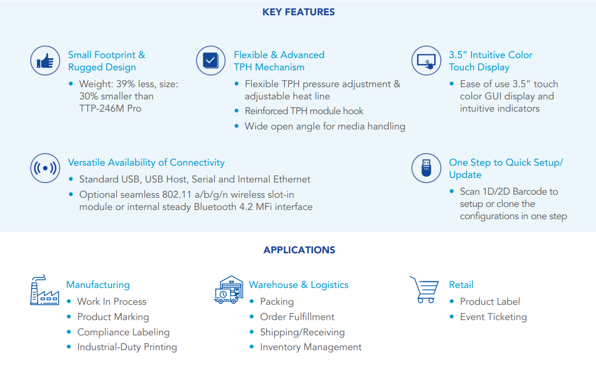These thermal label printers are value leaders for 4-inch-wide light industrial label printing. Linerless models are available.