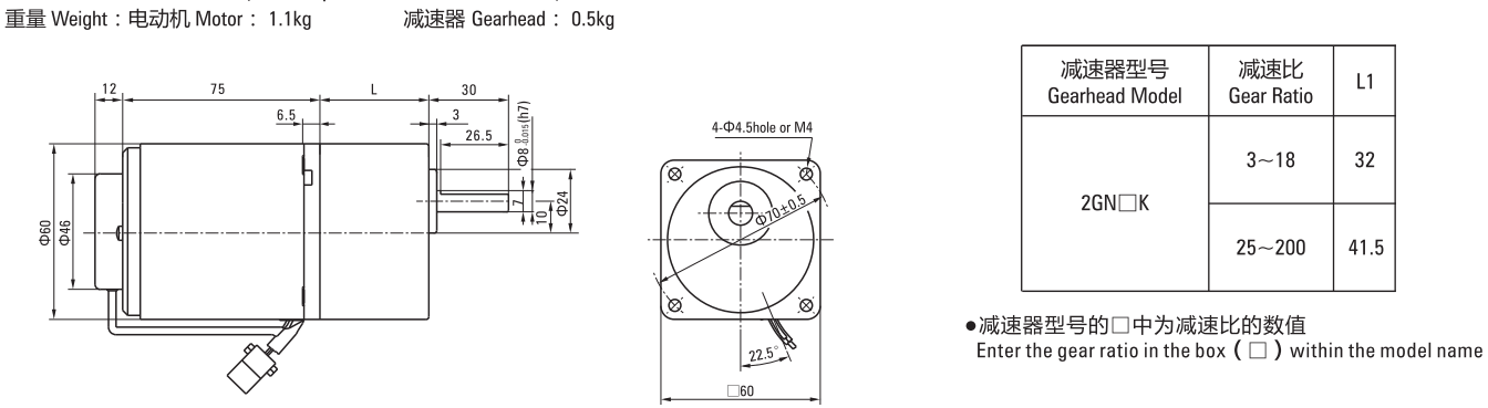 Gear Head  : Diam. Output Shaft : Ø 8 mm