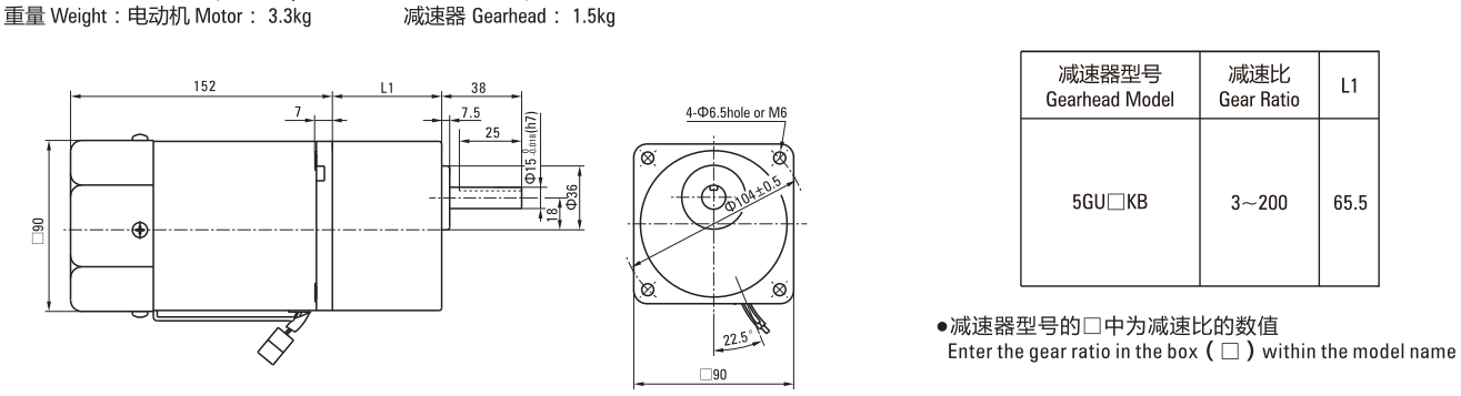 Gear Head  : Diam. Output Shaft : Ø 15 mm
