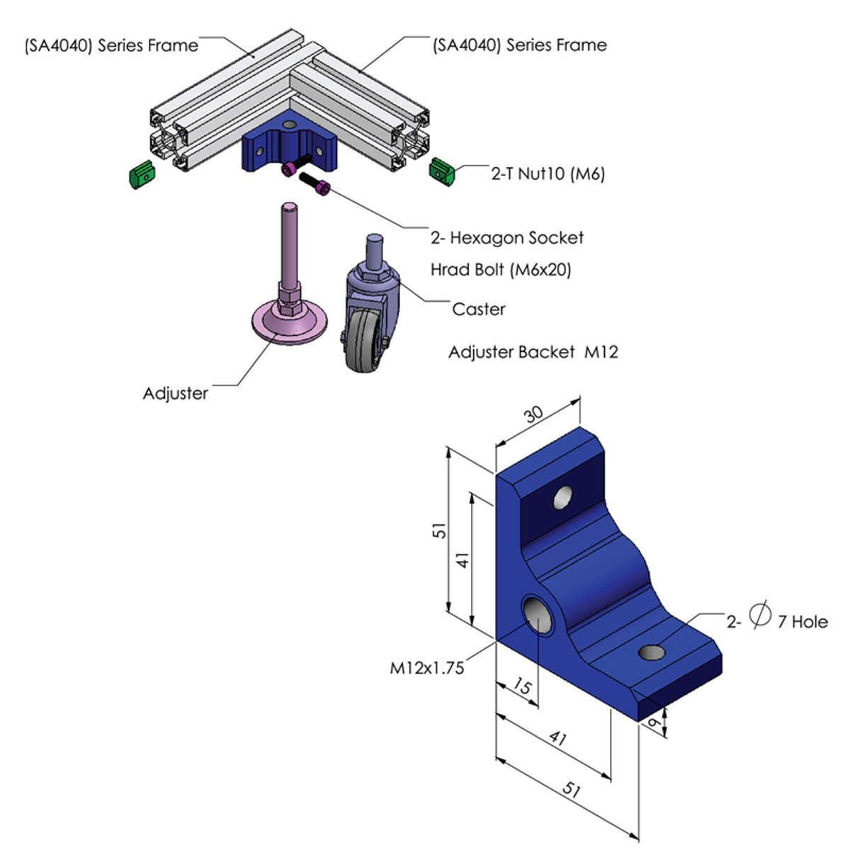 Adjuster Bracket 40 TN10M6 = 2 Pcs. -